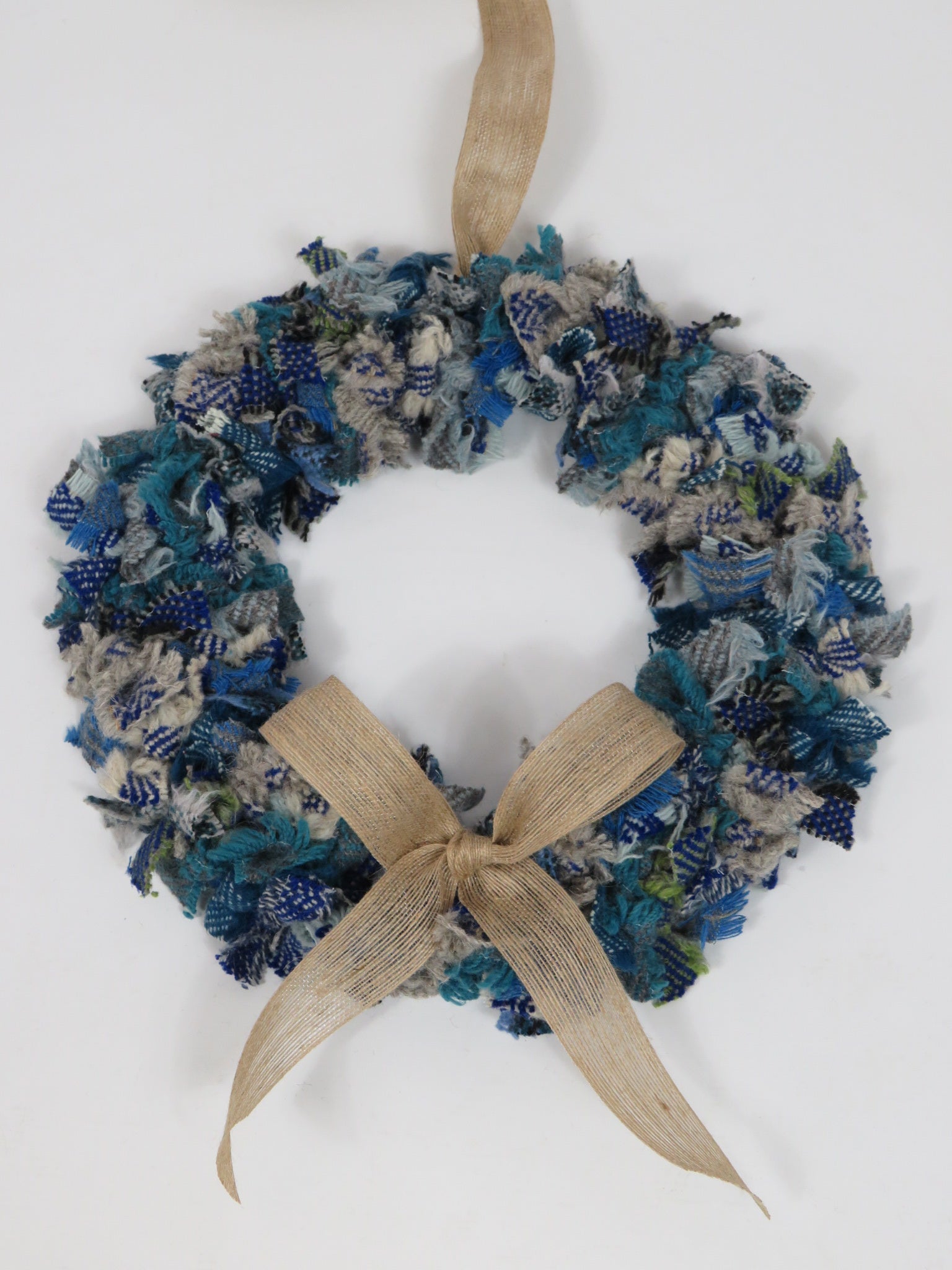 Our rag wreaths can go inside or outside as the natural wool fibres dry quickly