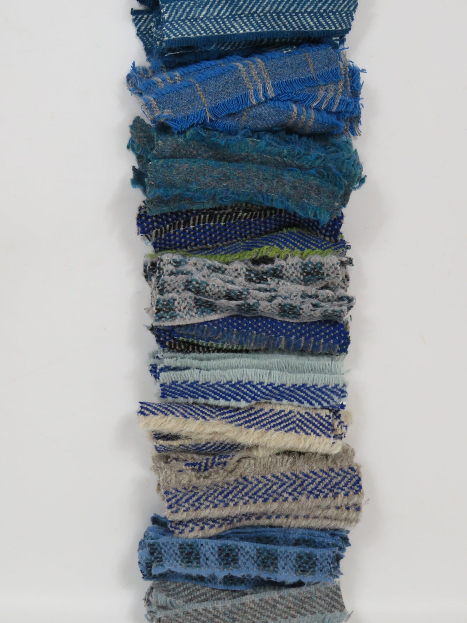 Each blanket is individually hand cut and finished by ourselves. The blankets are constantly changing colour depending on the yarns used in the mill that week. Each roll of blanket is unique and never repeated.
