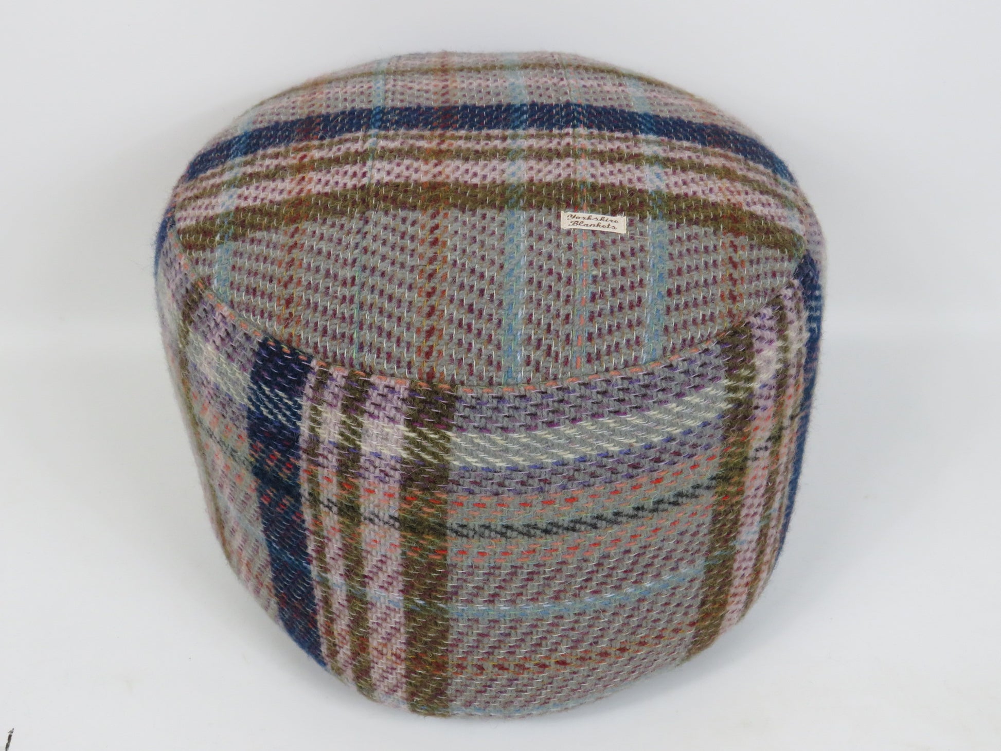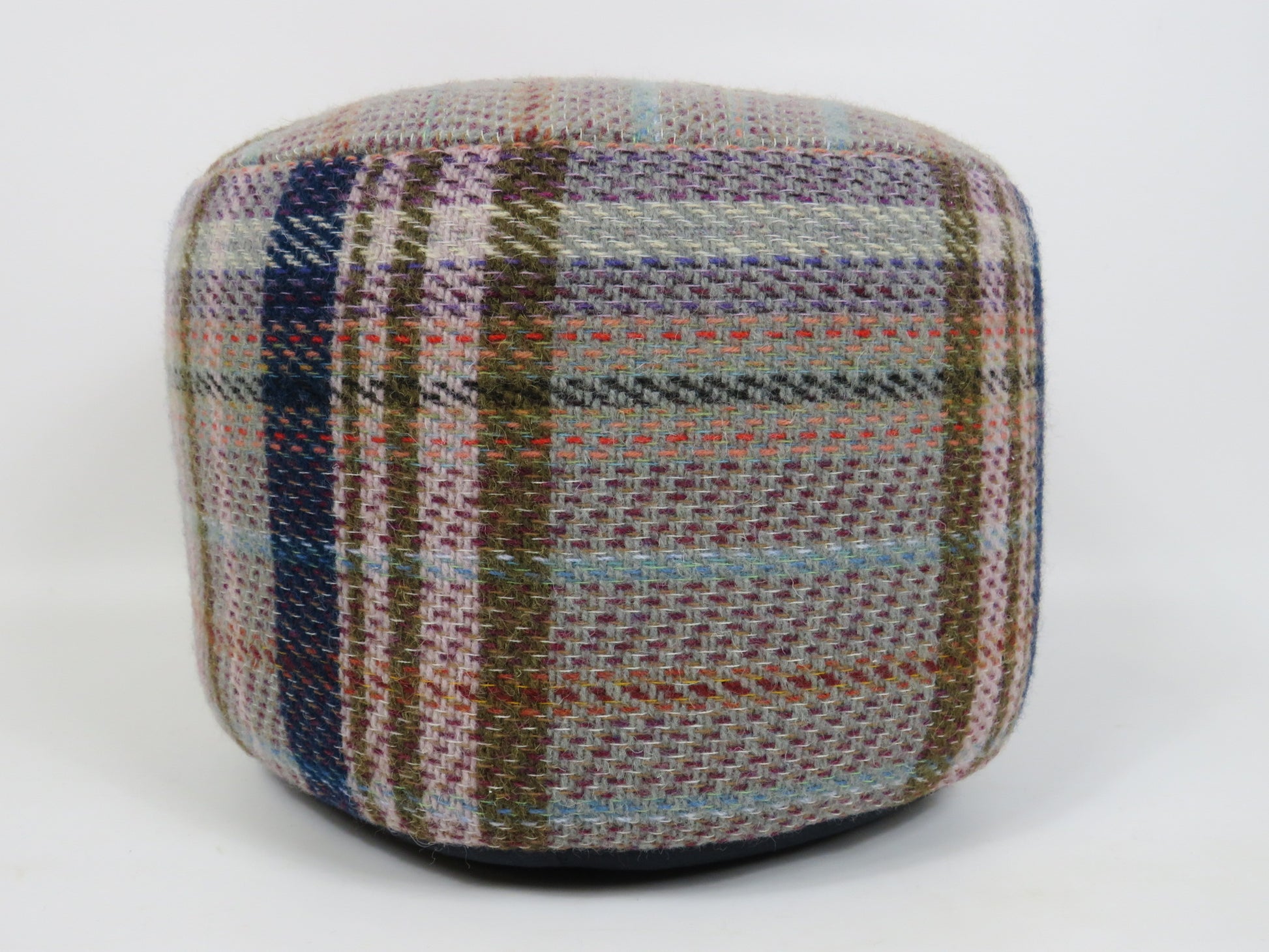 Beautiful Handmade Foot Pouffe. Each Pouffe is unique. Our pouffes are filled as full as possible with a mix of pure wool offcuts and beanbag balls. They have two zips on the base enabling you to refill if necessary. Handmade from our wool blankets and interlined. Size: 48cm diameter x 33 cm high approx. 2.5-3.5kg approx. You will receive the pouffe pictured.