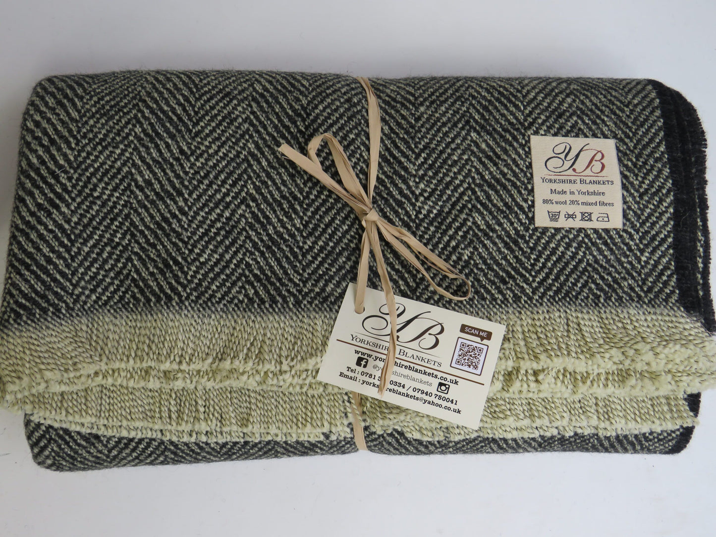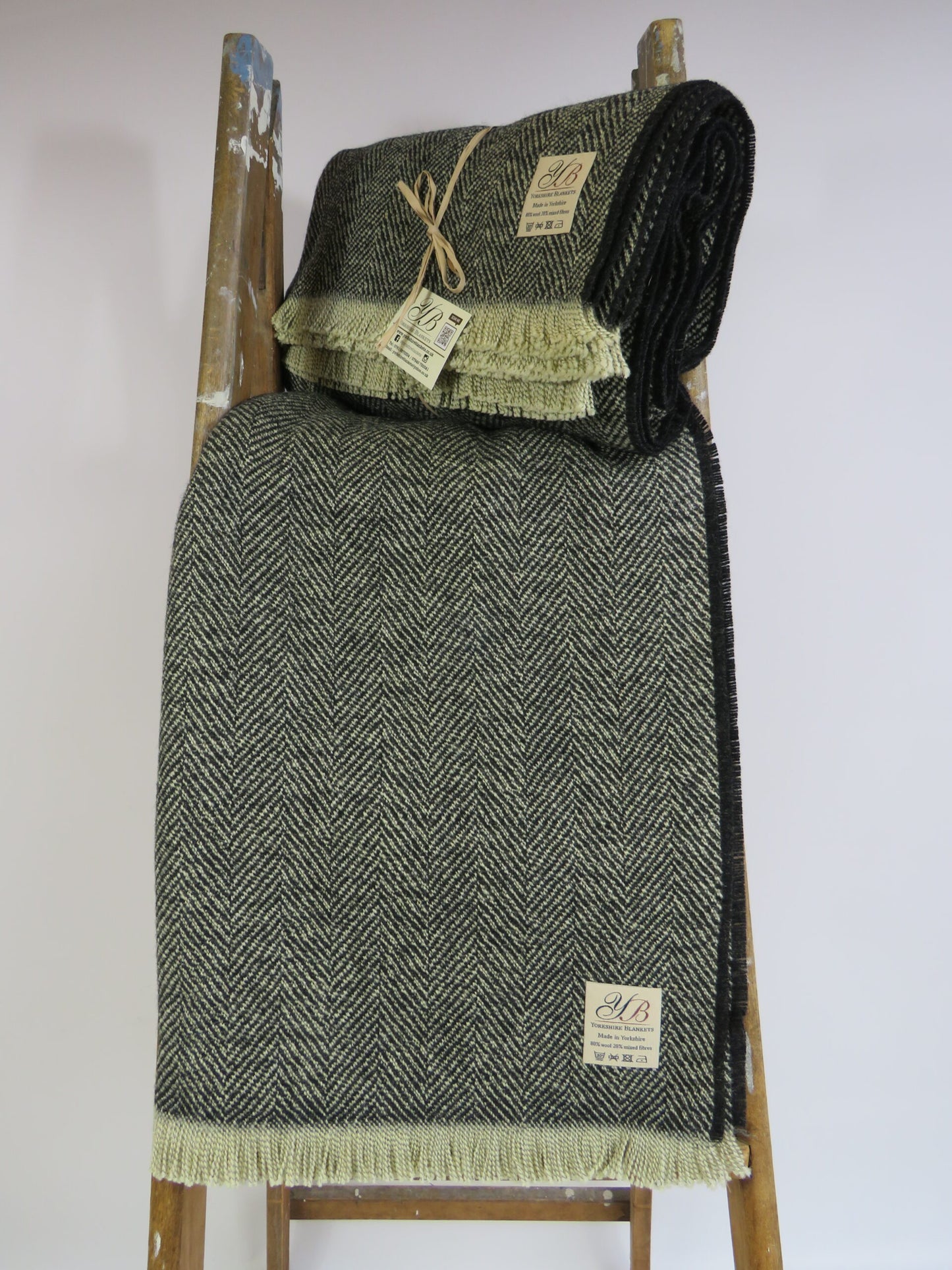 Each blanket is individually hand cut and finished by ourselves. The blankets are constantly changing colour depending on the yarns used in the mill that week. Each roll of blanket is unique and never repeated.